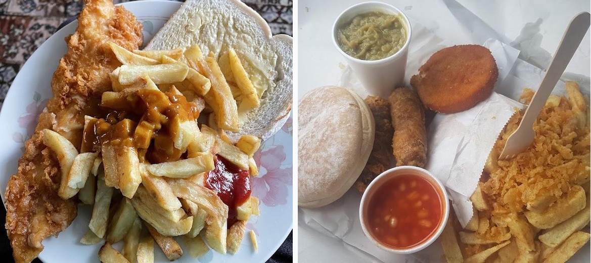 Very busy takeaway and restaurant which we thought was a really good sign and we weren't wrong ,we got seated in the restaurant, being politely greeted by a lovely waitress who took our order of large cod n chips n curry sauce n scraps and small cod n chips plus x2 dandelion n burdock drinks , the cod was cooked to perfection and the batter was light n crispy golden , amazing tasting fish which was fresh as fresh could be 💯 good sized portions, o and the curry sauce was sweet n yummy. All l can say is we can't wait to go back, total cost was £33.00 , good value and worth every penny considering the amazing quality of the food .