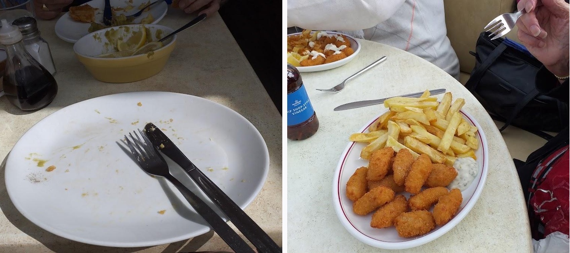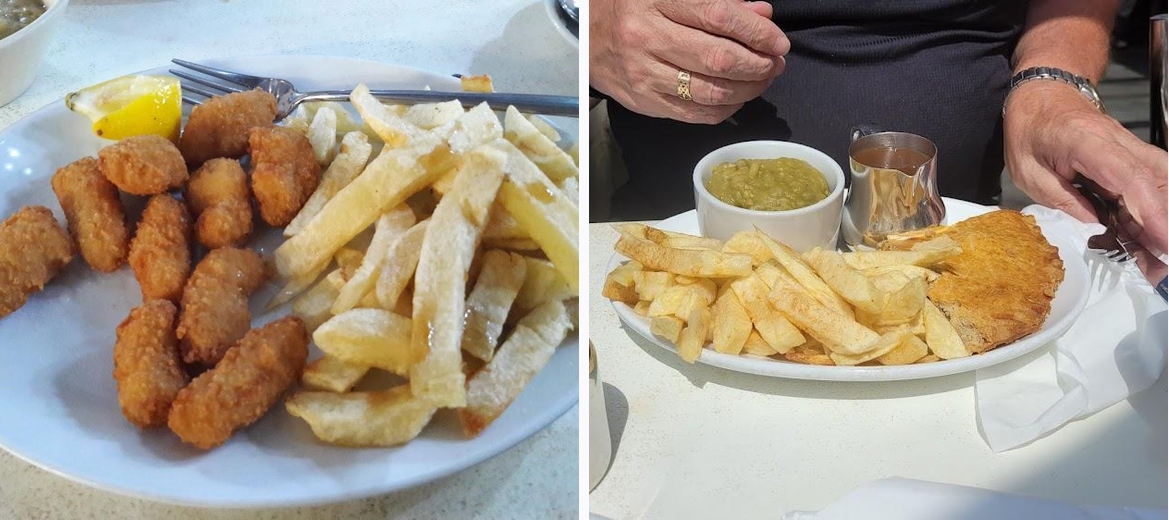 Superb meal. I had perfectly cooked scampi and chips and my husband had battered haddock and chips both served with tartare sauce and a generous piece of lemon. Mushy peas the best we’ve both had in a very long time! Of course finished off with a Yorkshire tea and cappuccino for my husband. Attentive staff. Highly recommended . Thank you
